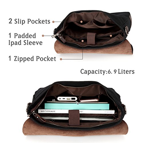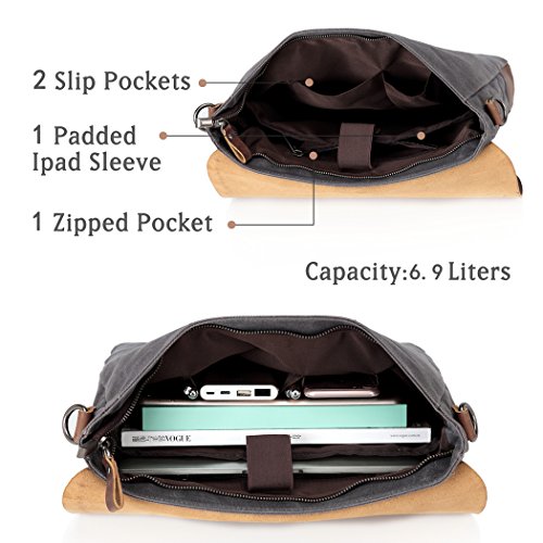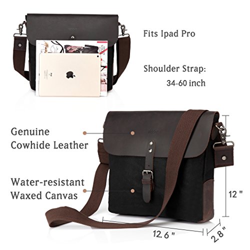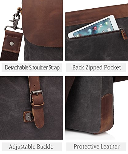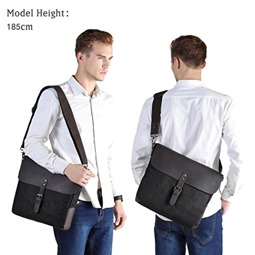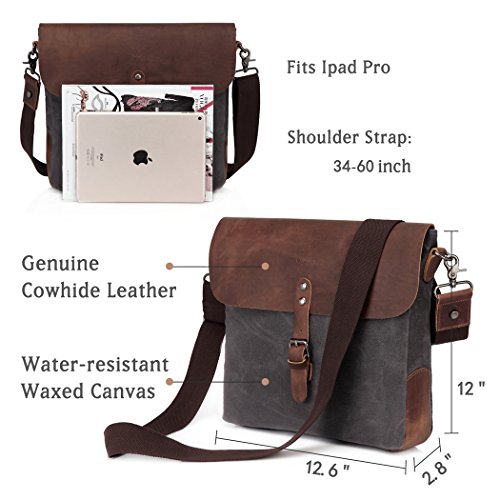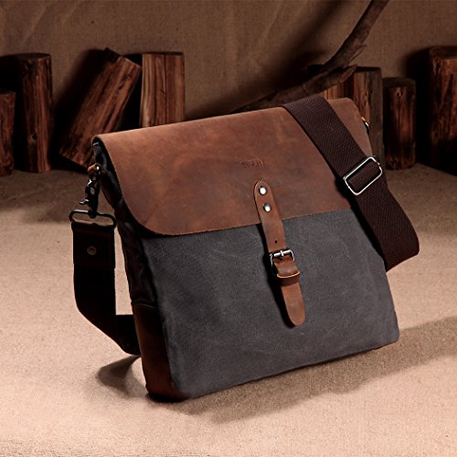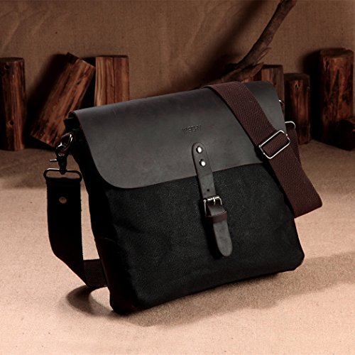 -. Title : Small Messenger Bag,Vaschy Vintage Leather Waxed Canvas Men's Crossbody Shoulder Bag