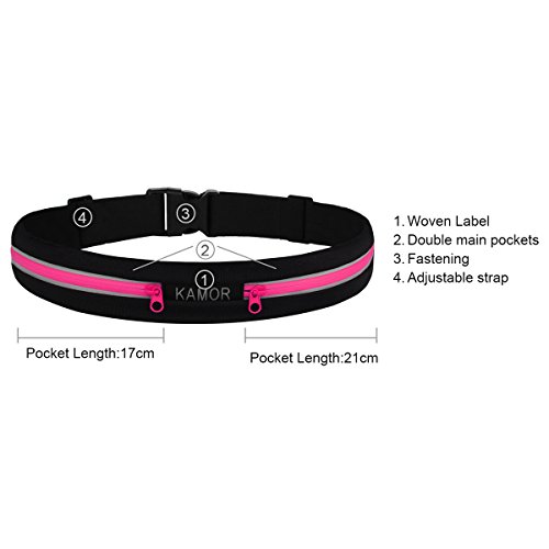 - Title : [2 Pack] Kamor® superior water resistant Running Belts / Runners Belt / Race Belt with 4CM high elastics and 3M reflective strip - Adjustable Band Fits 29" - 45"(75cm-115cm) Waists Comfortably - Two wide expandable pockets best to bring your smartphone, phones, keys, cards, cash, wallet, fitness gear, energy bars, passport and power bank - Fit for Apple iPhone 4, 4S, 5, 5S, 5C, 6, 6 plus, Blu Advance, BlackBerry Passport, Google Nexus 4, 5, Huawei Ascend Y320, Ascend P7, HTC ONE M8, M7, LG G3, G2, LG Optimus L7 P705, Motorola MOTO G, E, X, Nokia Lumia 520, 521, 530,630, 635, 730, 900, Samsung Galaxy Note 2, 3, 4, Samsung Galaxy S5, S5 Mini, S4, S4 Mini, S3 Mini, Galaxy Tab3, Galaxy S Duos, Sony Xperia M, Z3, Z2, and Most Smartphones - Running Belt/Fitness Workout Belt/Waist Pack Runner Belt/Waist Pack Belt/Runners Belt Waist Pouch/Sport Running Waist Bag/Runner's Waist Pack protects items during workouts, cycling, hiking, walking, running, riding bikes, fitness, sports, leisure and travel activities - Pink+Orange[Lifetime Warranty]