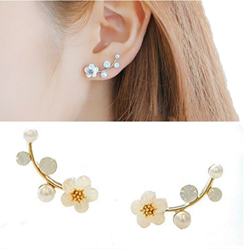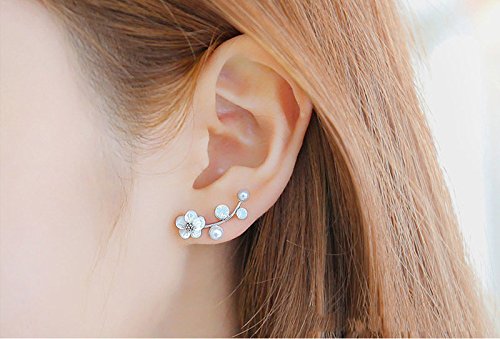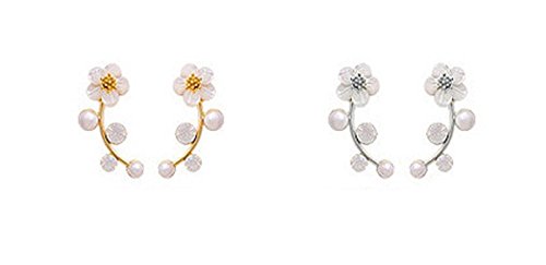 1Pair Women's Elegant Pearl Flower Stud Earring (Silver)