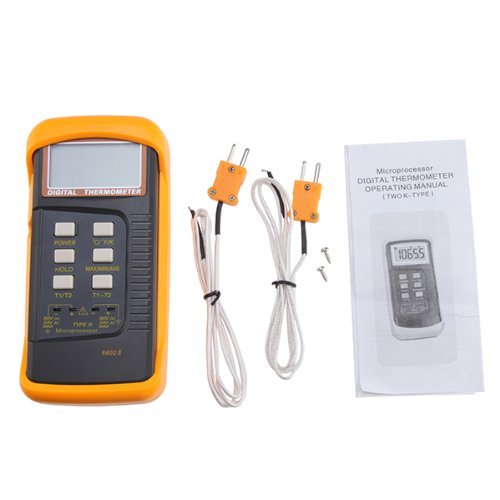 Actpe Dual Two Channel Digital Thermometer 2 K-Type Thermocouple Sensor 1300°C 2372°F