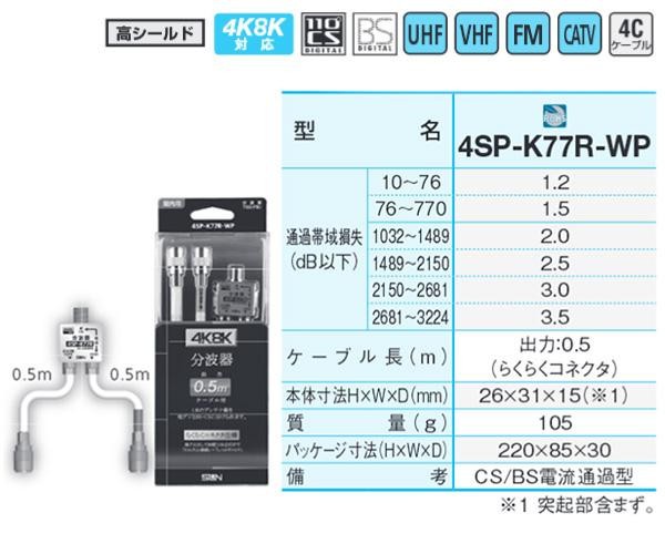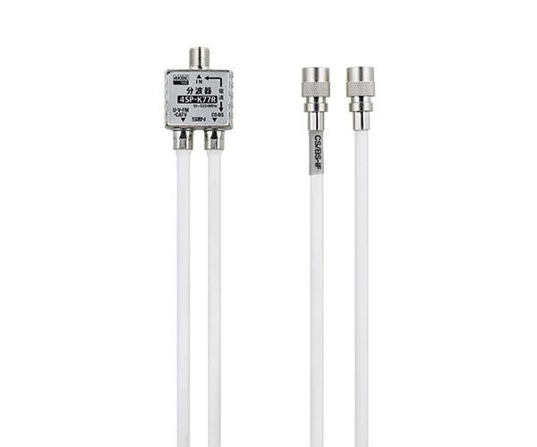 4K・8K衛星放送を含む全ての放送に対応するらくらくコネクタ加工ケーブル付分波器です。(CS・BSとUHF・VHF・FM・CATV電波に分ける。)