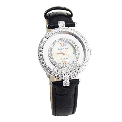 -. Feature : Jewelry series women watches,Presented by Royal Crown,Sold by Langii. / Japanese quartz,High quality Thick Rhodium Plated Case,Genuine Leather Watch Strap. / All stones set on the watch are hand-mounted brilliant Cubic Ziconia. / Prongs setting Technology same with Fine Jewelry, which make sure the stones would not fall in life. / Mother of pearl Dial present unique elegance.