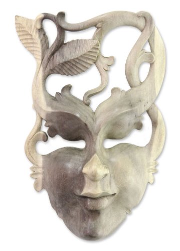 NOVICA Decorative Leaf And Tree Hibiscus Wood Mask, Beige, 'Fairy Of The Forest'