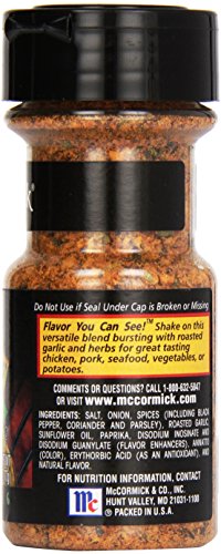 -. Feature : Blend features roasted garlic and coriander / Boosts the flavor of chicken and pork / Made with natural herbs and spices / No MSG, artificial flavors or colors added / From America's #1 herb and spice brand / Kosher