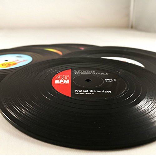 - Protects surfaces from hot and cold drinks using creative retro Vinyl 45 record coasters.