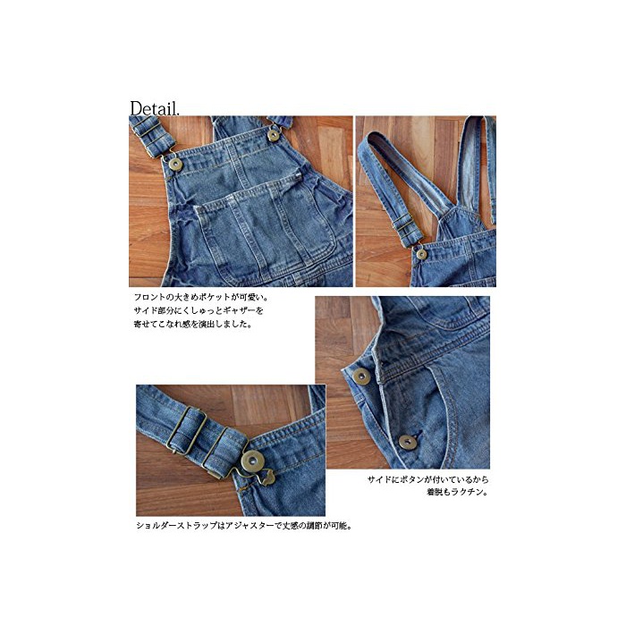 【M】총기장(최장):약115cm,옷길이(웨스트):약90cm,힙:약99cm,거폭:약56cm 【L】총기장(최장):약115cm,옷길이(웨스트):약95cm,힙:약105cm,거폭:약58cm [소재] 면100% ※데님은 탈색 하는 소재입니다.