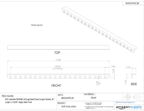 -. Title : BUD Industries CSB-8181 14 Gauge Steel Chassis Support Bracket, 41" Length x 1-45/64" Height, Black Finish