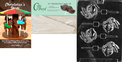 Cybrtrayd 45St25Bk-E198 'Bunny with Bow Lolly' Easter Chocolate Candy Mold with 25 4.5-Inch Lollipop Sticks and Chocolatier's Guide