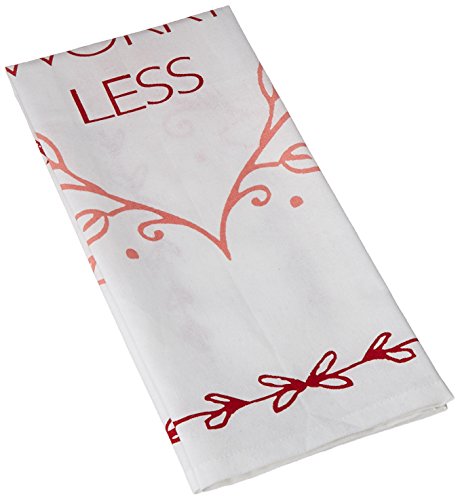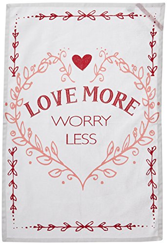 Tag 205278 Love More Worry Less Dishtowel, White, 18"W x 26"L
