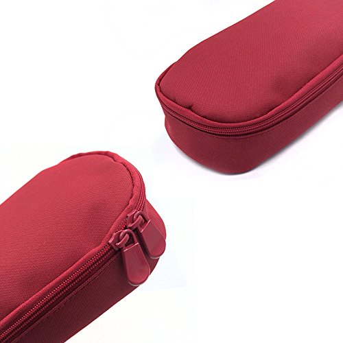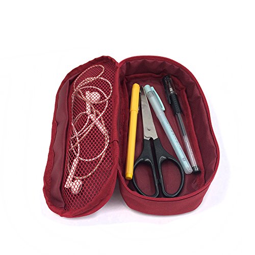 A Little Lemon Big Capacity Multifunction Canvas Pencil Case Bag Storage Organizer Pencil Case,Makeup Pouch Durable Students Stationery With Double Zipper(Wine red)
