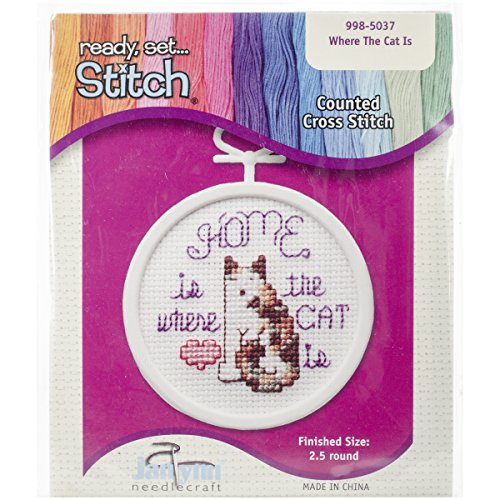 Janlynn 998-5037 18 Count Round Mini Counted Cross Stitch Kit, 2-1/2-Inch, Home is Where The Cat is