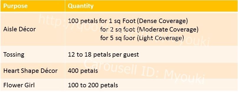 Please refer below for guidelines on how many petals you would need for