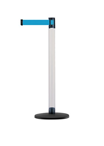 Tensabarrier TCLB-33-STD-NO-L3X-C Post, 7'6" length Light Blue belt, 38" Height, 2" wide, 90" Length, Clear