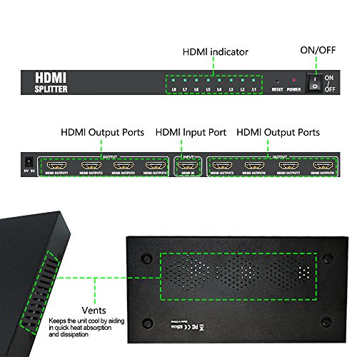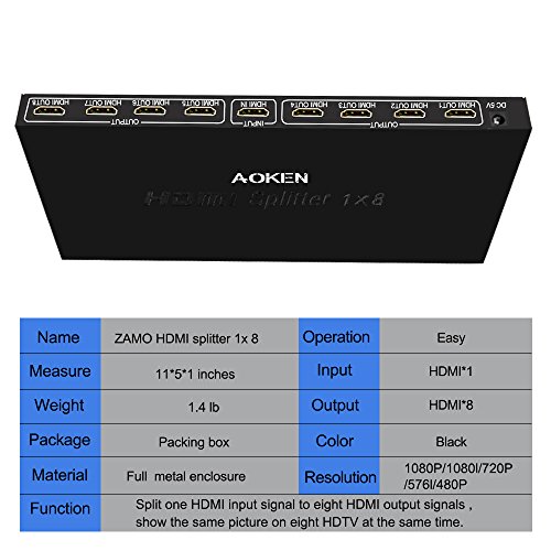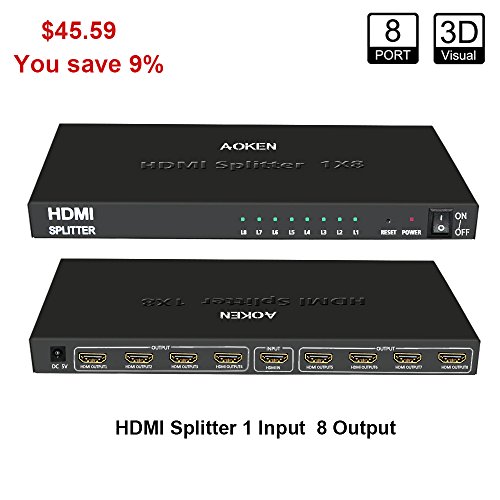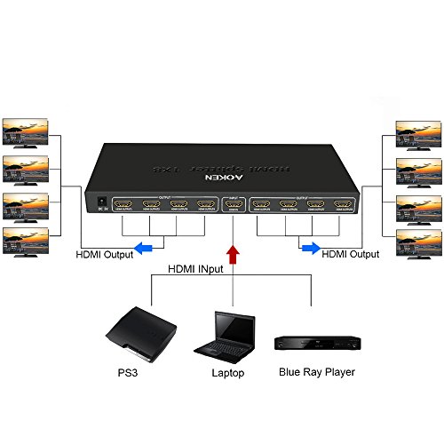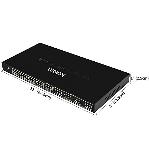 Aoken 1x8 8 Ports HDMI Powered Splitter for Full HD 1080P & 3D Support (One Input To Eight Outputs)