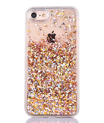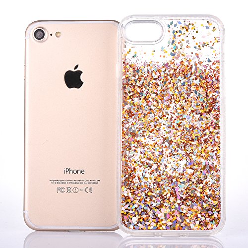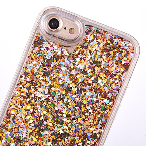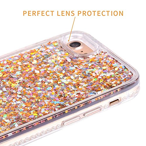 iPhone 7 Glitter Liquid Case - 3D Creative Cute Fun Liquid Glitter Sparkle Case Cover with Soft Diamond Shining Bumper Anti-scratch Cover Case for iPhone 7 / 4.7inch (Diamond Gold)