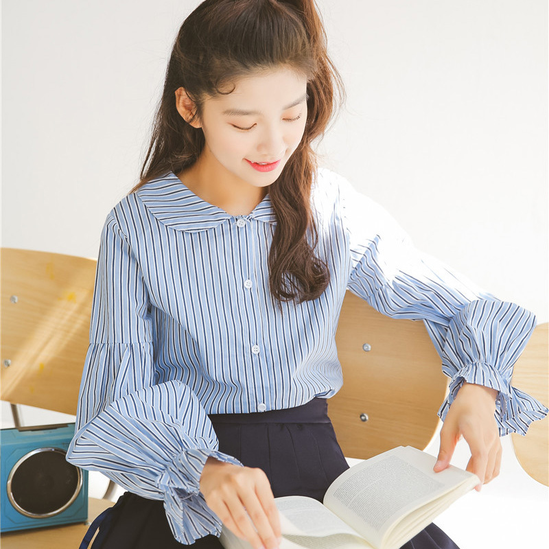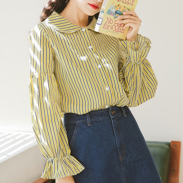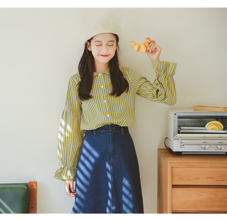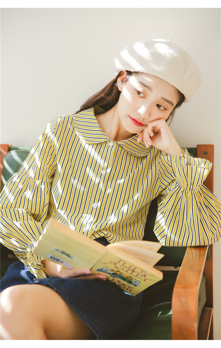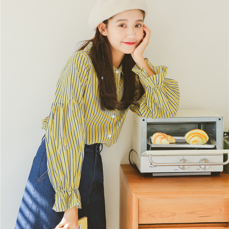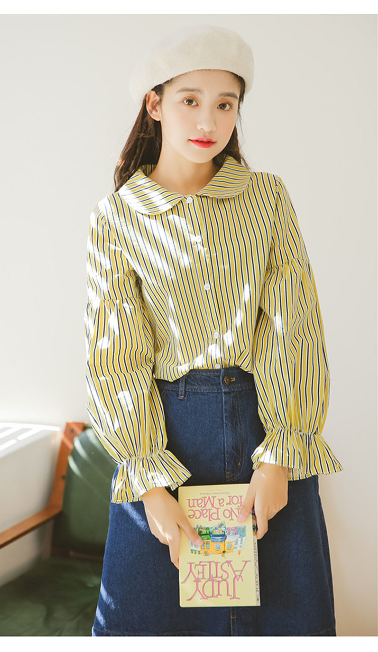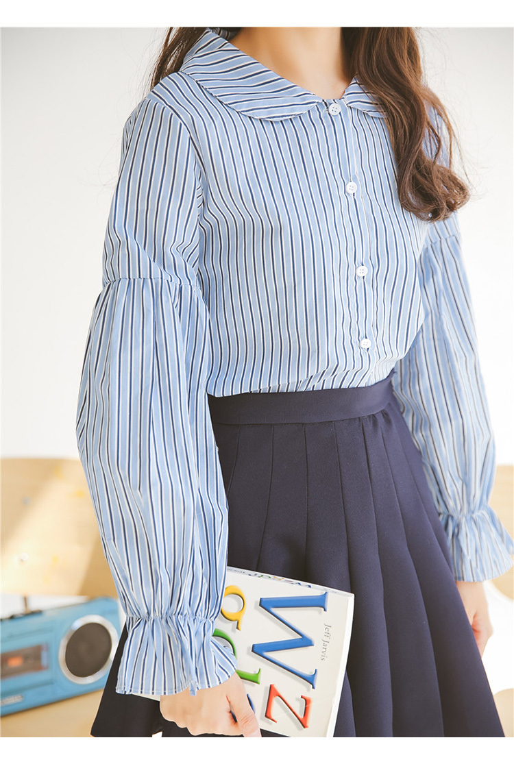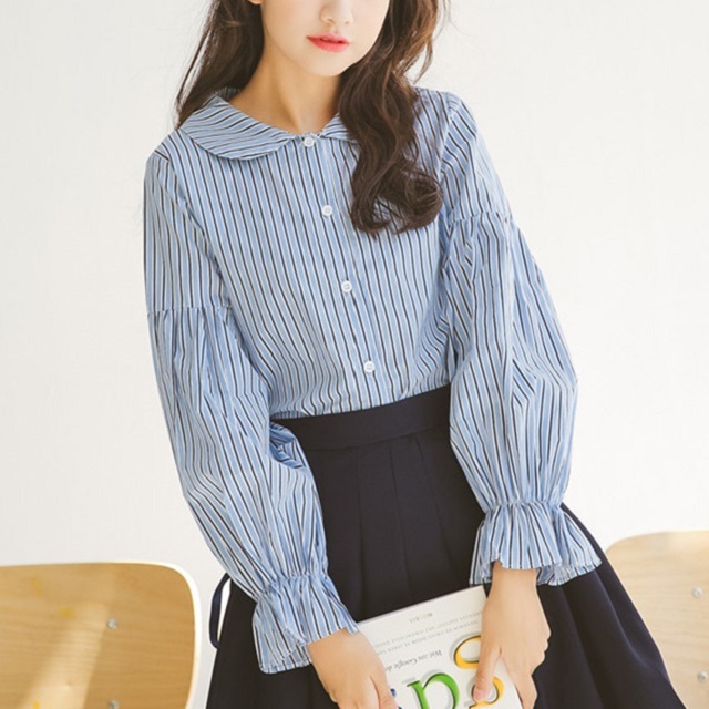 丸首襟とキャンディースリーブがガーリーな印象を与えるブラウスです♪