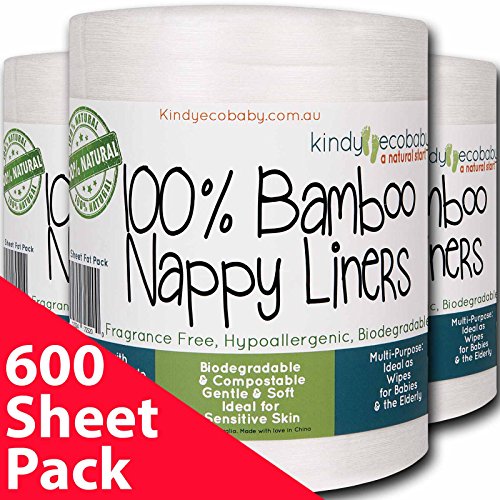 ENVIRONMENTALLY FRIENDLY BAMBOO: Kindy Ecobaby Flushable Diaper Liners are made of 100% Bamboo from natural renewable resources, in a thickness that offers strength and minimal environmental impact. Contains no odors or chemical residues.