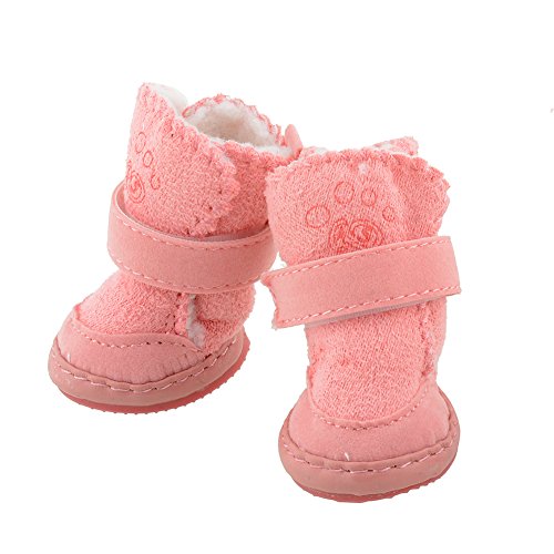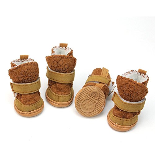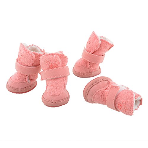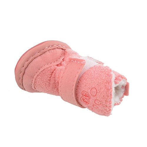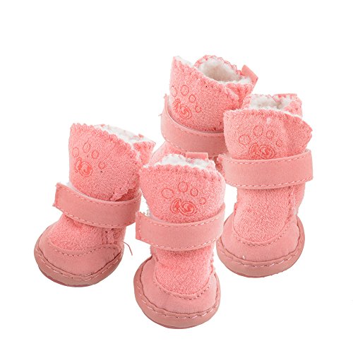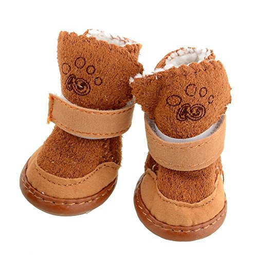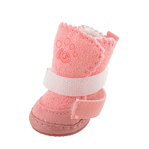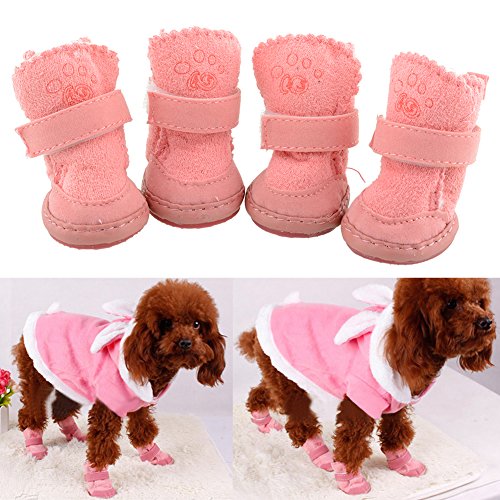 -. Title : 4Pcs Lovely Warm Adjustable Pet Dog Puppy Winter Cotton Anti-slip Snow Cozy Shoes Boots