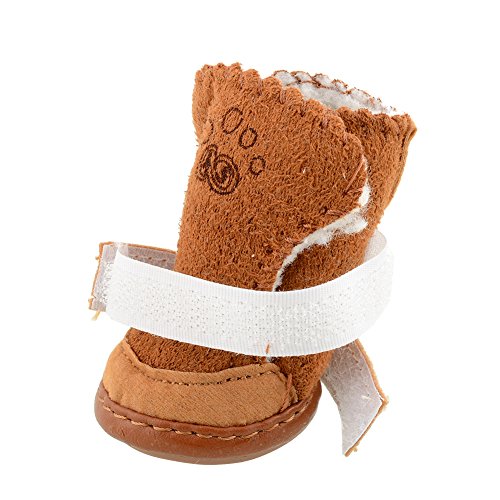 -. Feature : This set of 4pcs pet dog boots keep paws dry, warm and safe. / Adjustable velcro straps keep them snug and secure. Deluxe anti-slip rubber sole. / Size run small, if your pet usual size is xs or s, please choose our medium size. For size details, please refer to product description below. / Material: Cotton Blend, rubber bottom, adjustable velcro snap(Sold by 4pcs/set). / The dog in the pictures is just for product show, the two sizes we offer only fit for 1- 5lb small dogs.