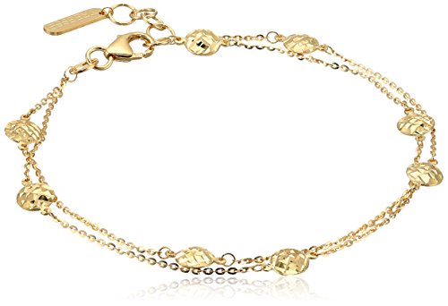 -. Title : 10k Yellow Gold Hammered Drop Balls Bracelet, 7"+0.5" Extender