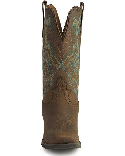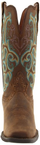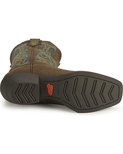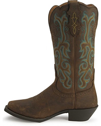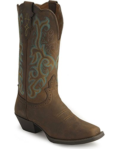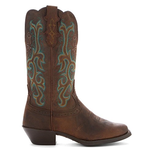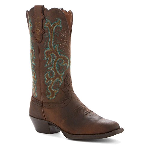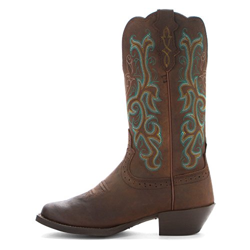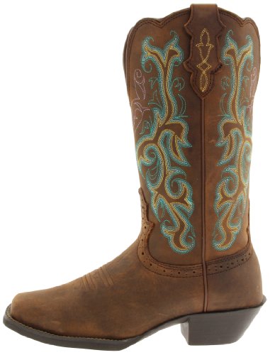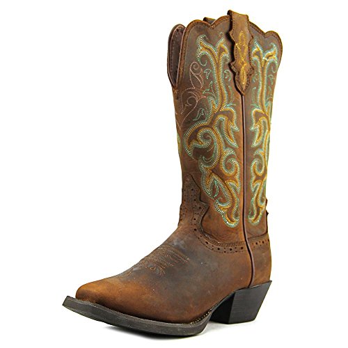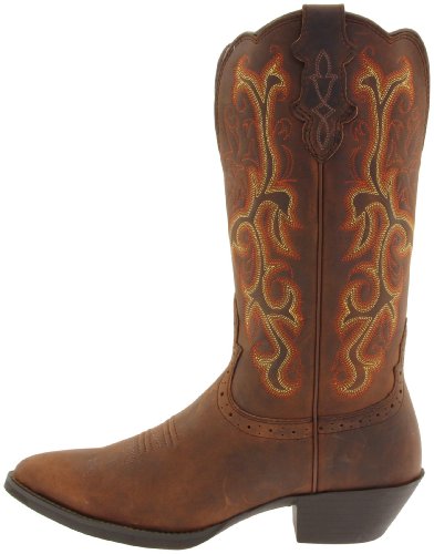 Amazon.com Whether you're into roping and rodeo or just itching to let your inner cowgirl out to play, the Stampede from Justin Boots has you covered. This fantastic leather look features gorgeous stitching and finely tooled overlays for a look that’s feminine and just a little bit rough and ready. Built with proprietary comfort technology with a tractioned technical western rubber sole, this fine boot is every bit as capable as it is good looking. 0