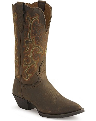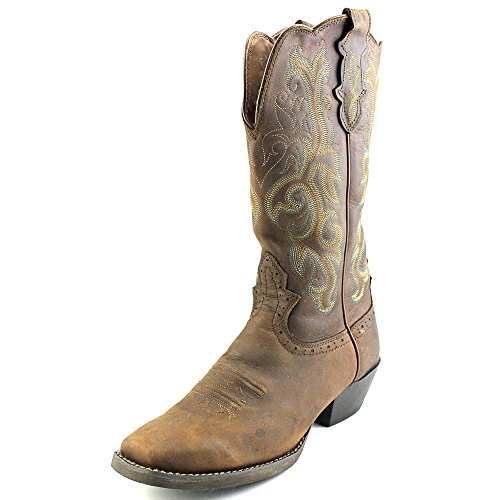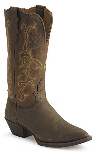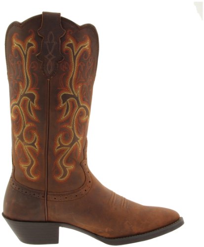 Studio : Justin Boots Publisher : Justin Boots Binding : Shoes Product Description This Justin cattleman boot basic features a nice price, quality leather, and a rubber sole for versatile wear Justin Stampede cattleman cowboy boot is handcrafted with a brown rawhide leather foot and fancy stitched, scalloped 11" matching leather shaft. Single stitched welt. 1 1/4" stockman boot heel. Updated square toe profile. 14 1/2" shaft circumference (based on a size 7B). 0