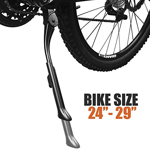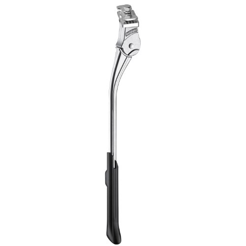 Made of aluminum alloy, the kickstand is designed to fit most lightweight, midweight and cruiser bicycles 24" to 29" and easily installs with a bottom bracket mount that fits on a bike's chain stay neck. Riders can adjust their bikes to rest at any angle, which is great for balancing bikes in places where the ground is uneven. It is available in ED black or V-Polished silver.