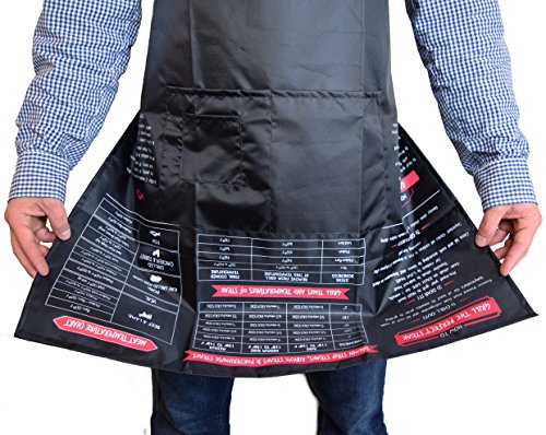 - GRILL LIKE A PRO - This apron has your back and will help you be King of the Grill in no time. All of your vital grilling instructions, temperatures, and timing for fish, pork and beef are included on the apron itself. It's quite literally a grilling cheat sheet -- and it's UPSIDE DOWN so you can conveniently reference the information while wearing it. Perfect gift for those who love to grill and are always looking to improve their skills!