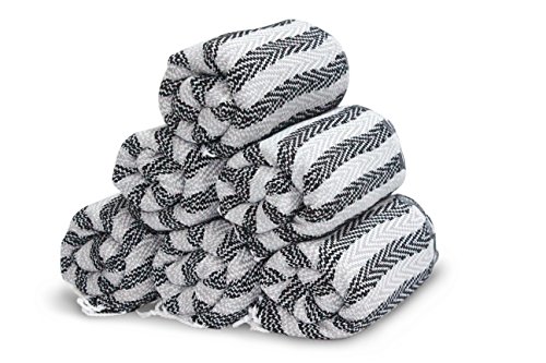 (SET OF 6) - LaModaHome Chevron Style Turkish Cotton Bath Beach Hammam Towel Peshtemal Blanket, Black and Gray