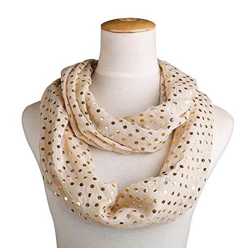 -. Binding : Apparel -. Brand : MissShorthair -. Department : womens -. Feature : Mother's Day Sales Promotion / Hand Wash, Please Use Cold Water, Dry Flat / Material: 50% Cotton, 50% Polyester, Very Stylish / Approximately Circumfrence: 71inch Width: 20inch(180CM*50CM) / Brand History: Miss Shorthair is a registered trademark. More than 6 years history. You can trust us. -. ProductGroup : Apparel -. ProductTypeName : ACCESSORY -. Size : Large -. Title : MissShorthair Women's New Fashion Light Weight Gold Metallic Polka Dots Pattern Infinity Scarf