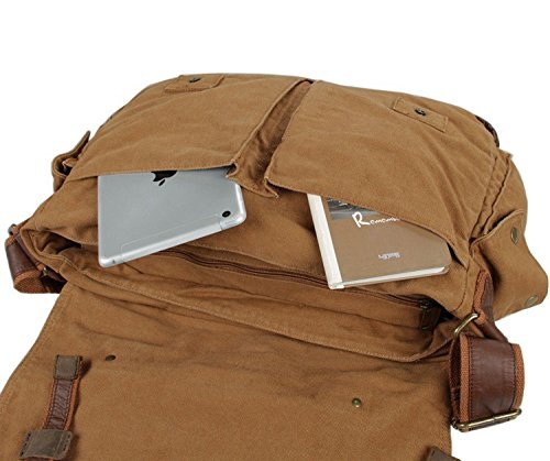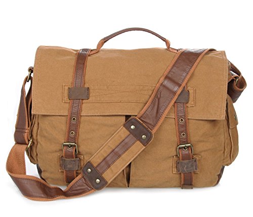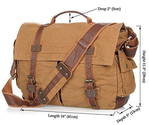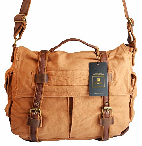 -. Title : Kenox 16 Inches Vintage Canvas Leather Laptop Briefcase Scholl College Messenger Bag Traveling Shoulder Bag