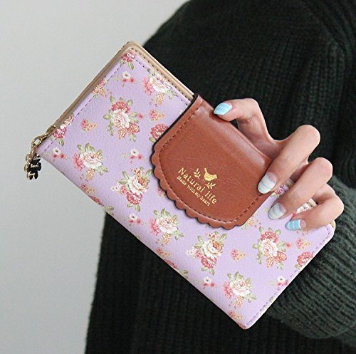 IHRKleid Geldborse Damen Mutifunktionale Blumen Drucken Geldborsen IHRKleid Leder Geldbeutel Suss Portemonnaie