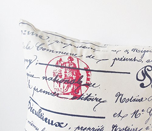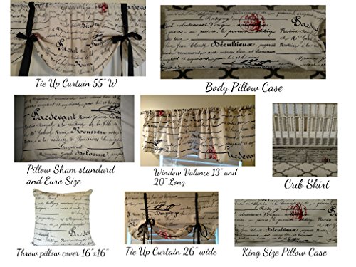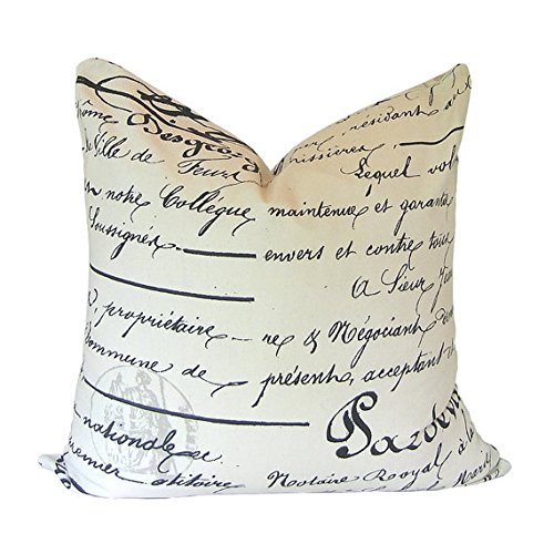 French Script Euro pillow sham 26"x 26" square size large cover. Home Bed Decor Penmanship theme