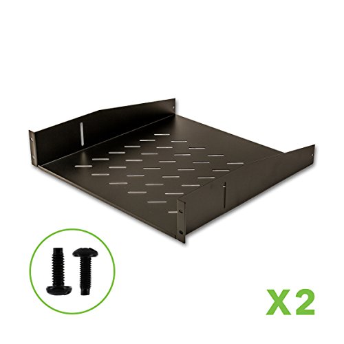 Navepoint 2U 19-Inch Universal Vented Rack Mount Cantilever Server Cabinet Shelf 18-Inches Deep With Lip Set Of 2 Black