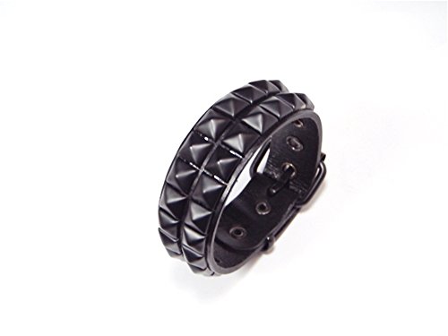 -. Title : レザーブラックスタッズリストバンド・2ライン