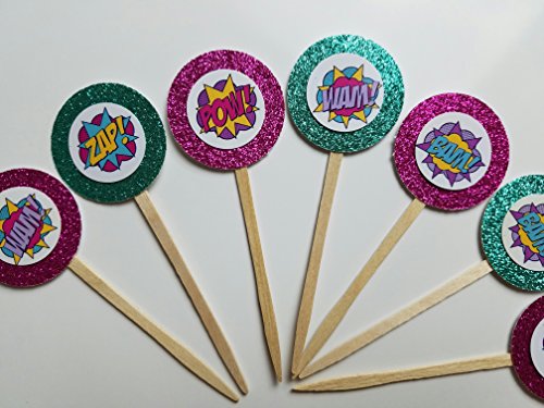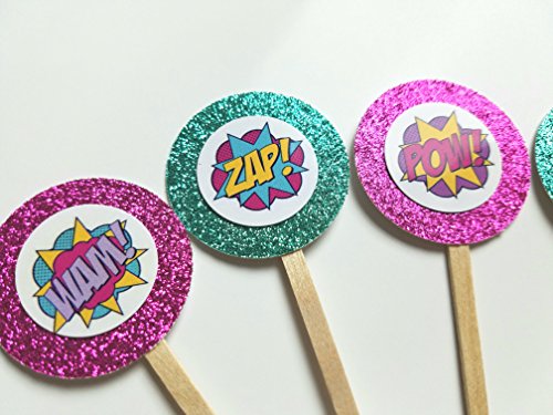 8 Comic Book Girls Super Hero Cupcake Toppers Birthday Party Favor Goody Bags Gift Box Treat Loot Pow Zap Bam Powerpuff