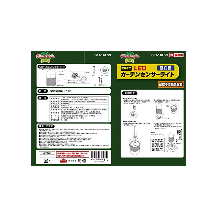 원본상품명: 電池式LEDガ?デンセンサ?ライト
