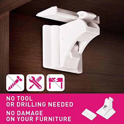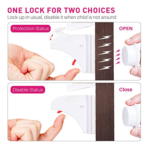 Binding : Baby Product Product Description Product description: Baby safety is always a primary care for every moms. However, moms sometimes cannot always be with their babies. At these time, curious babies always love to crawl across the house, and sometimes even chock something that should have been locked! That is why we created this thoughtful magnetic lock. With these invisible baby proofing locks, no kids can pull the door open, giving your kids a safe and secure home to grow up healthy and happy! Installation instructions: Clean and dry the surface needed for installation. If your cabinet door is covered by the top board(Type One): 1. Use the bar to measure and mark the thickness of the cabinet door. 2. Reserve the width marked by the bar when install the bucket. 3. Peel and stick the lock onto the surface according the position of the bucket. If your cabinet door is uncovered by the top board(Type Two): 1. Use the bar to measure and mark the thickness of the top board. 2. Reserve the width marked by the bar when install the lock. 3. Peel and stick the bucket onto the surface according the position of the lock. ? Please refer to the packing box for detailed instruciton. Tips: To maximum the stickiness, better to use it after 12 hours. Attention: 1. Don't install on the iron object because the magnetic lock may disable the iron bolt. 2. Clean the surface on which the lock will be installed and used. 3. Please allow 12 hours for adhesive to dry before use. Package including: Safety lock *12 Key *2 Bar *2 0