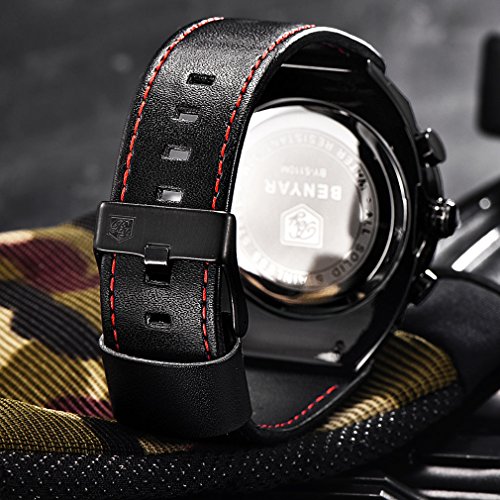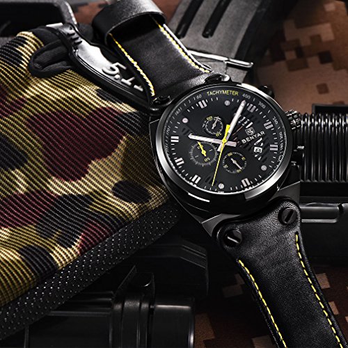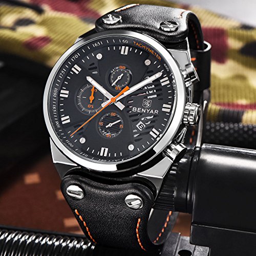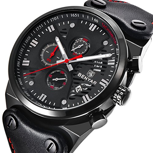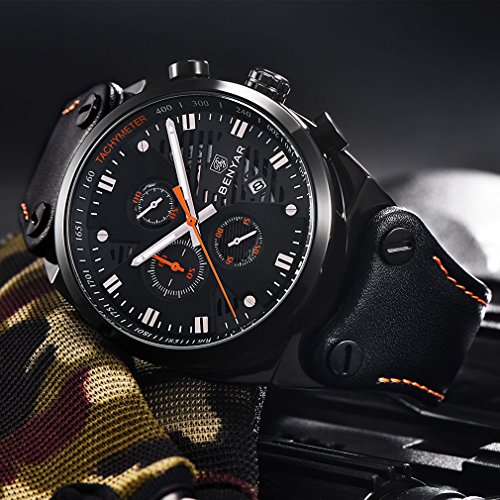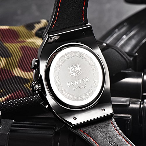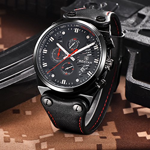 -. Title : BENYAR Chronograph Waterproof Wrist Watches Sport Military Black Leather Band Strap Watch for Men