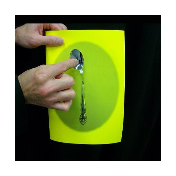 TVで話題!大反響マジック!!写真のスプーンが曲がる!そして・・・本物のスプーンになって折れる!お客さまも目の前で、唖然!! 大勢のギャラリーの前で大成功まちがいなしのマジックがコレ!! 「超魔術」と書かれたシートを示します。 シートを開くと、「スプーン」の文字とスプーンの写真があります。 写真のスプーンはまっすぐです。 マジシャンがスプーンを軽くこすると・・・ なんと、写真のスプーンは完全に曲がってしまうのです。 シートを一旦閉じてさらにおまじないをかけます。 すると、突然「ポロン」と本物のスプーンの先端がシートから落ちてくるのです! シートを開くと・・・ 「スプーン」の文字とスプーンの写真がありますが、なんと写真のスプーンは先端がなくなっているのです。 ●とっても簡単にできます。 ●もちろん消耗品ではありませんので、何回でも使えます。 ●スプーンの先端をパームしたりしません。 ●写真のスプーンは手でこするだけで簡単に曲がる新アイディアです。 ●セット、リセットはすぐにできます。 ●クロースアップでもステージでもできます。 商品は用具一式、日本語の解説DVDになります。