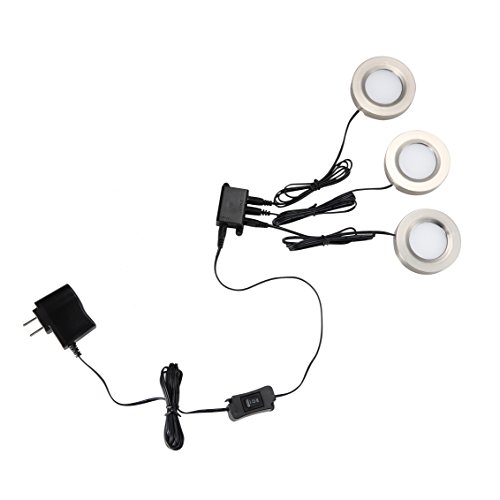 GetInLight LED Puck Lights Kit, Recessed or Surface Mount Design, Soft White 3000K, 2W (6W Total, 30W Equivalent), Brushed Nickel Finished, ETL Listed, (Pack of 3), IN-0102-3-SN