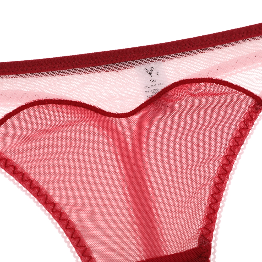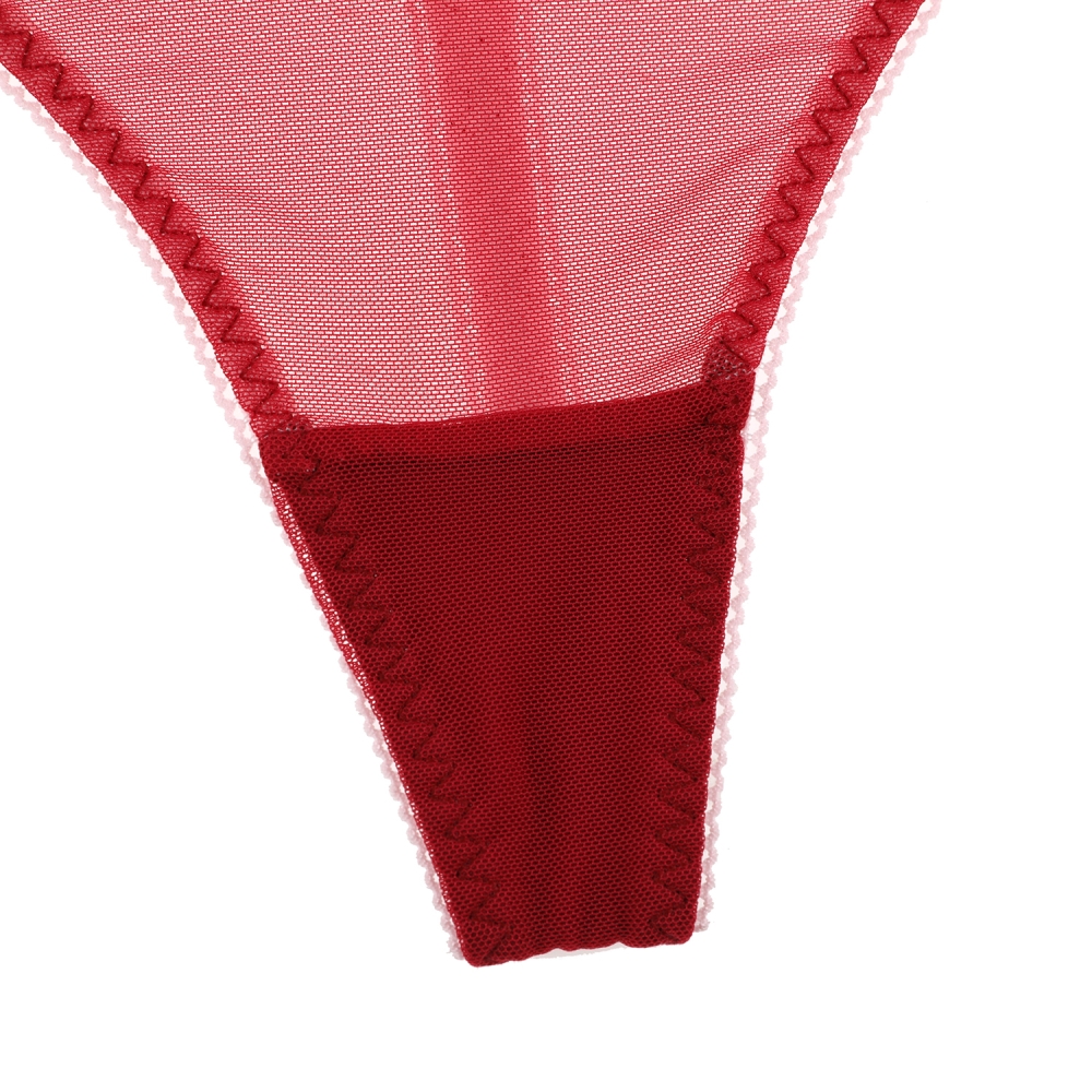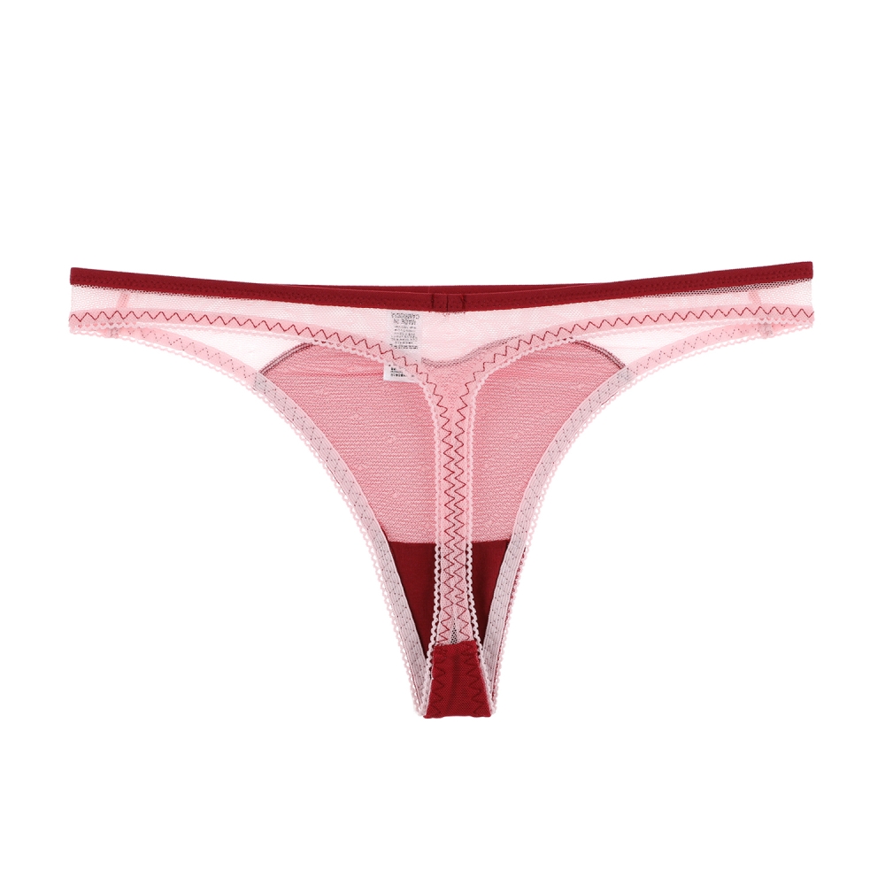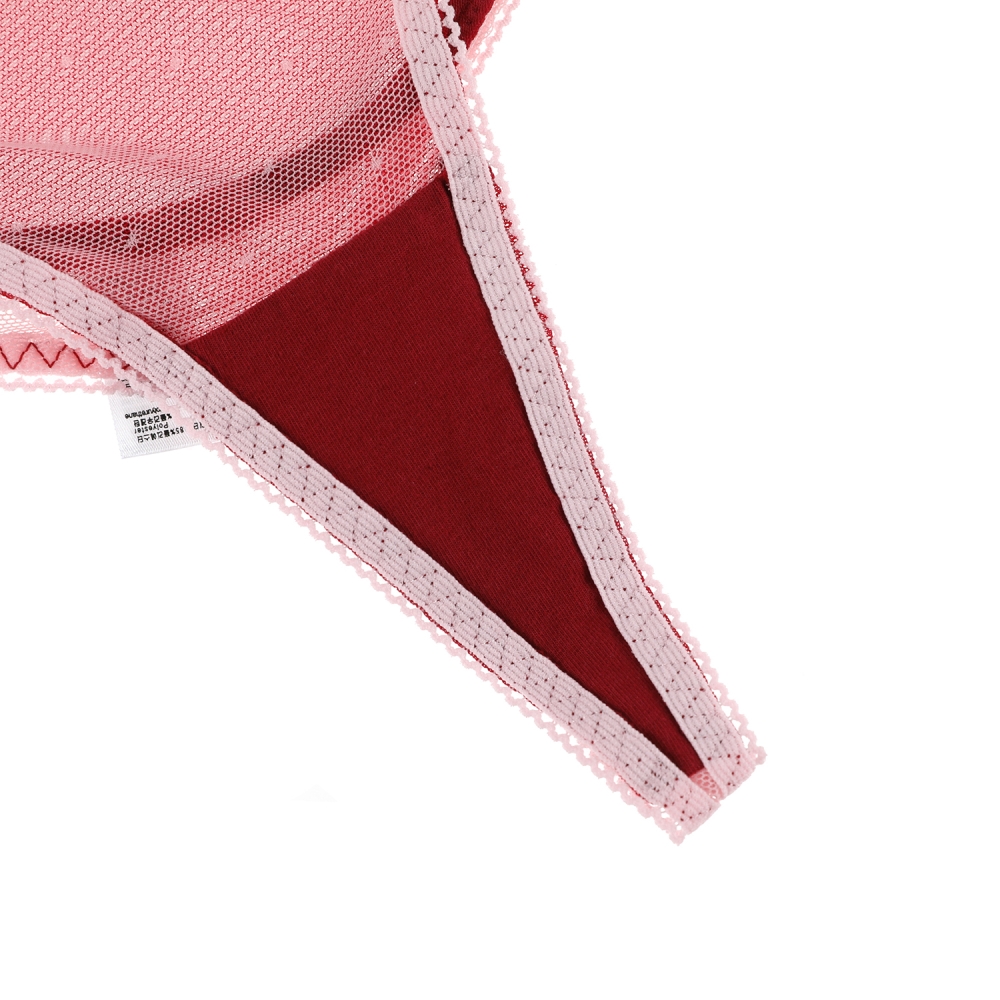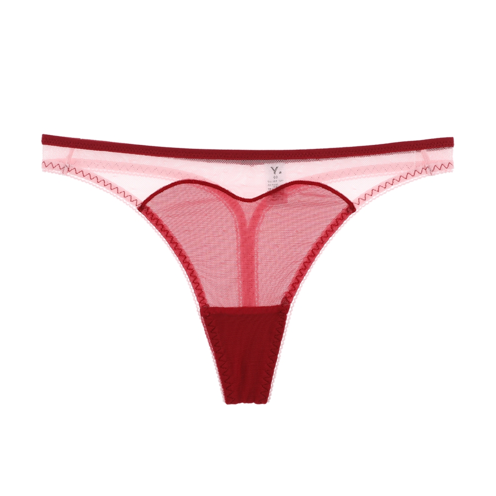 러블리한 컬러감과 앞판 하트모양 쏭 팬티로 사랑스러운 느낌 제공. 전체 망 원단을 사용하여 섹시한 느낌도 연출.