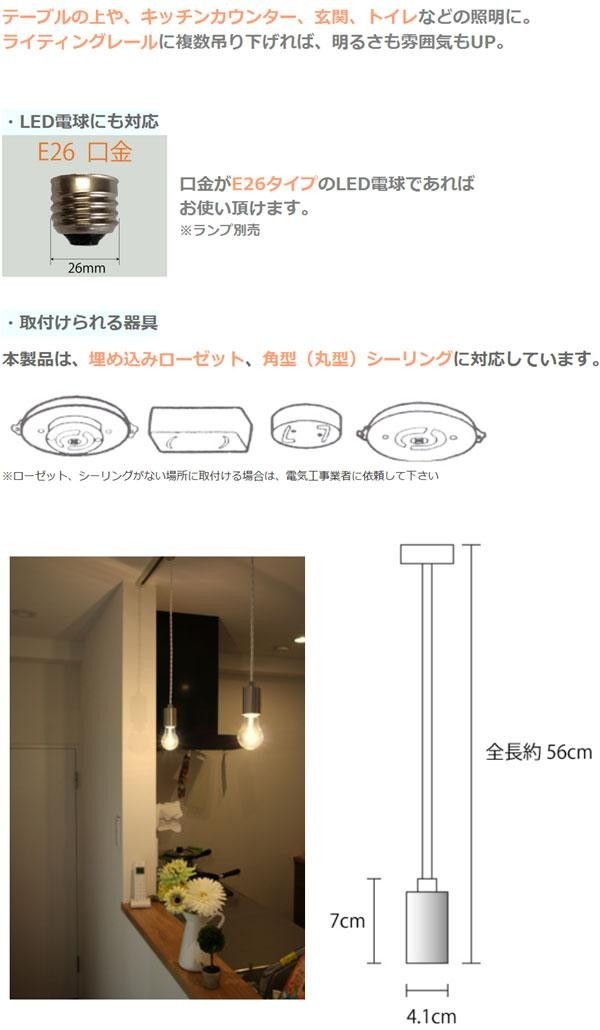 | より線を使用しているので、アンティーク感があります。テーブルの上や、キッチンカウンター、玄関、トイレなどの照明にピッタリです。ライティングレールに複数吊り下げれば、明るさも雰囲気も良くなります。 |