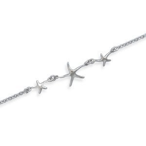 -. Title : 9 Inch+1.5 Inch Extention Rhodium Plated StarFish Anklet