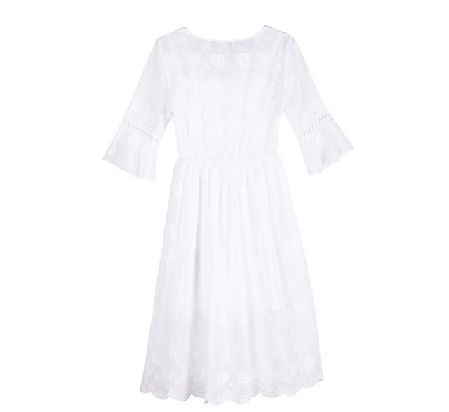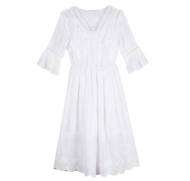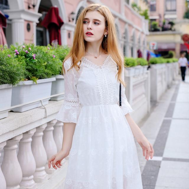 ・キーワード:刺繍 V字襟 フレア 2018年夏トレンド ワンピース