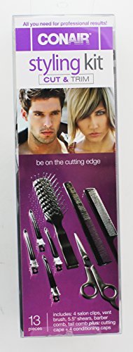 -. Binding : Misc. -. Brand : Conair -. EAN : 0074108800299 -. Feature : All You Need For Professional Results / THe Shears Cut With Precision / Combs Make It Easy To Separate & Lift The Hair While Cutting / Clips Hold Longer Hair Out Of The Way During Trims / The Cape Keeps You Clean -. IsAdultProduct : 0 -. Label : Conair -. Manufacturer : Conair -. Model : 80029 -. MPN : conair-80029 -. NumberOfItems : 25 -. PackageQuantity : 13 -. PartNumber : conair-80029 -. ProductGroup : Beauty -. ProductTypeName : BEAUTY -. Publisher : Conair -. Studio : Conair -. Title : Conair Cut & Trim Styling Kit - 13 Pieces -. UPC : 074108800299