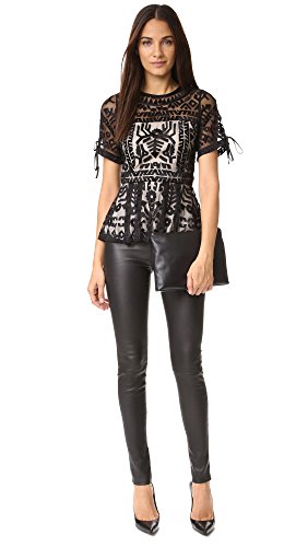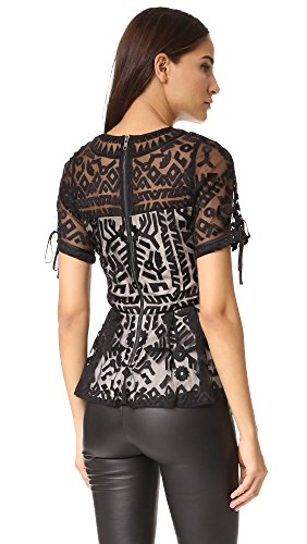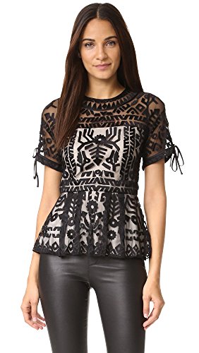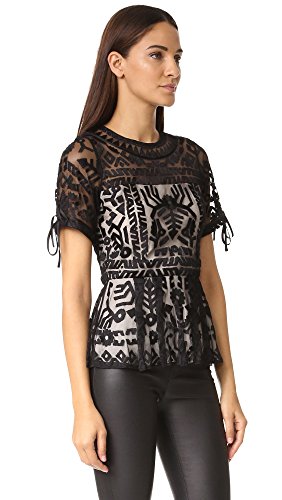Product DescriptionShort sleeve blouse with sheer detailing and tie sides. Made in china. 100 percent nylon.0