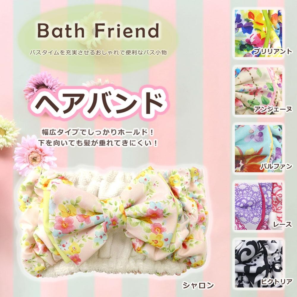 キュートなデザインのヘアバンド♪洗顔やメイク時に活躍します! 製造国:中国 素材・材質:ポリエステル100% 商品サイズ:(約)幅20×高さ13cm 仕様:洗濯機・乾燥機使用不可 ※サプライヤー直送品 ご注文後3~4営業日後の出荷となります【商品名】バスフレンド ヘアバンド シャロン