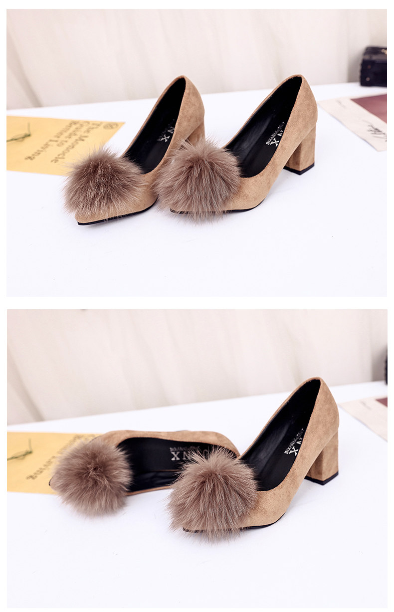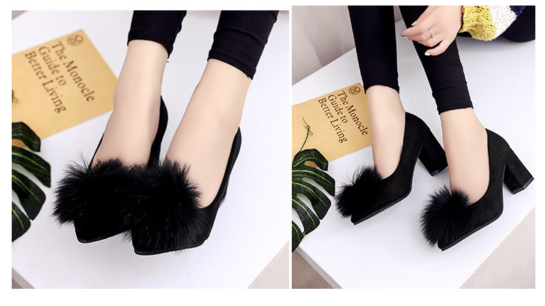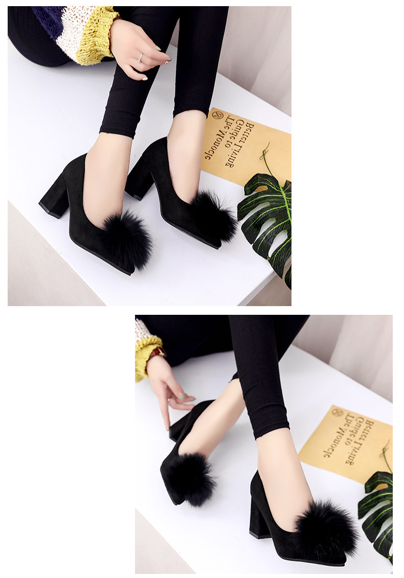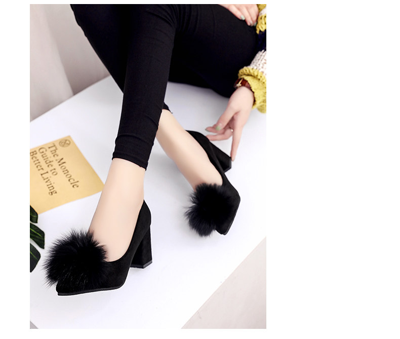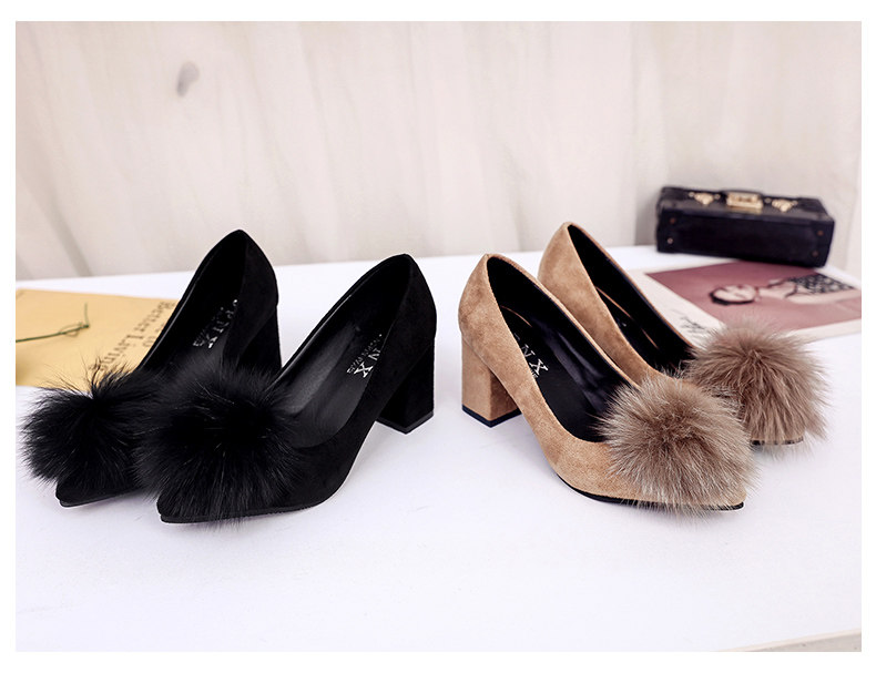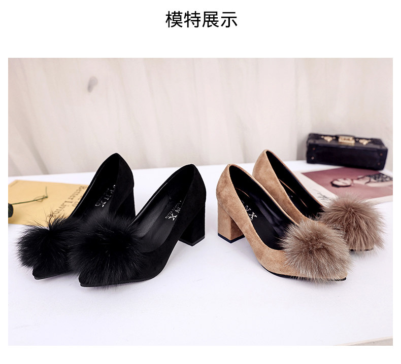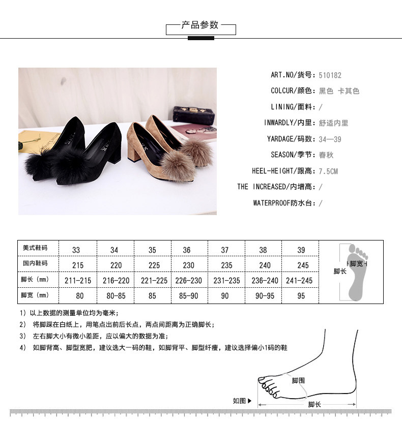 韩版小清新高跟鞋女秋季新款尖头粗跟浅口单鞋休闲百搭女鞋子