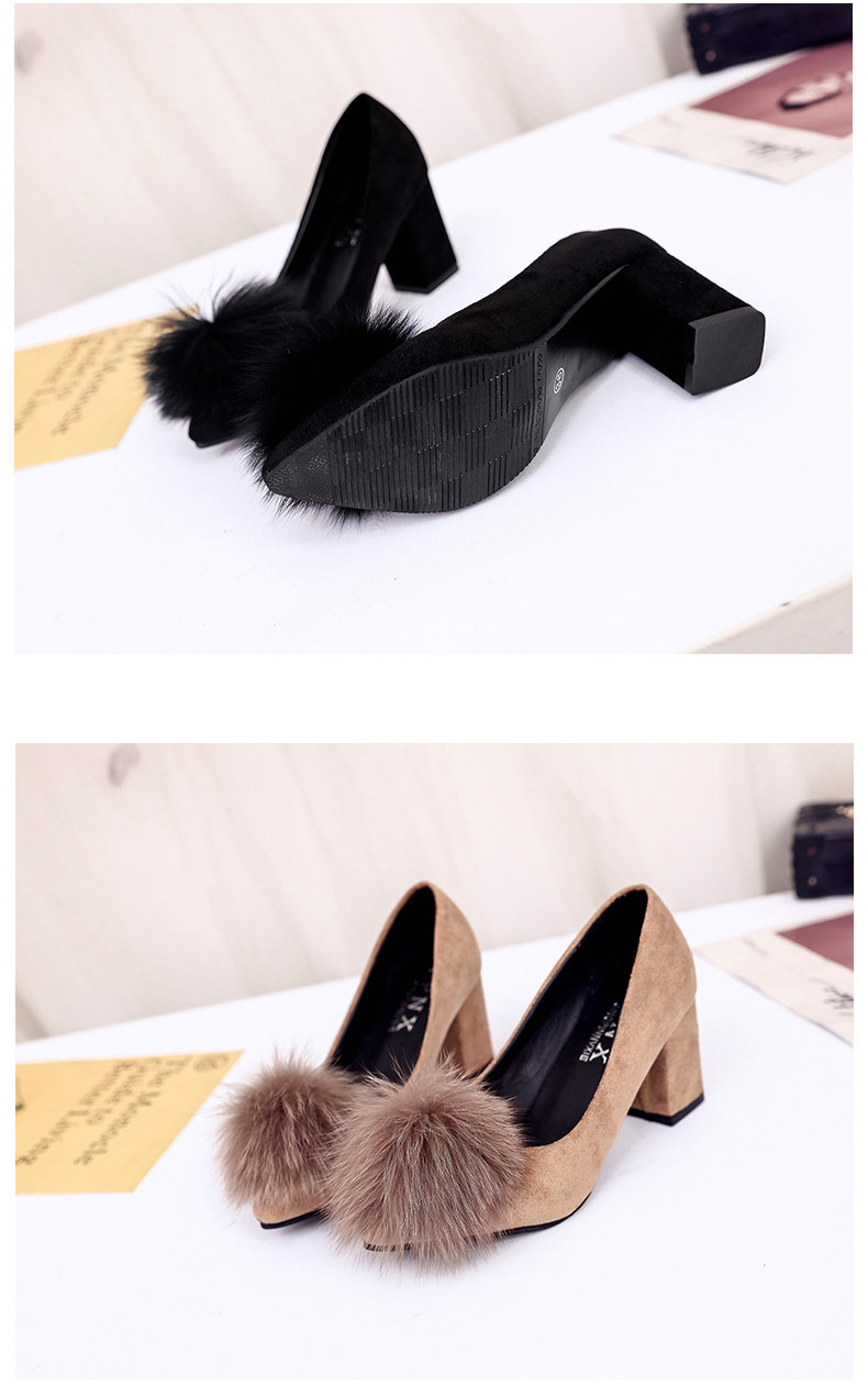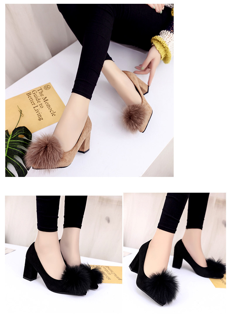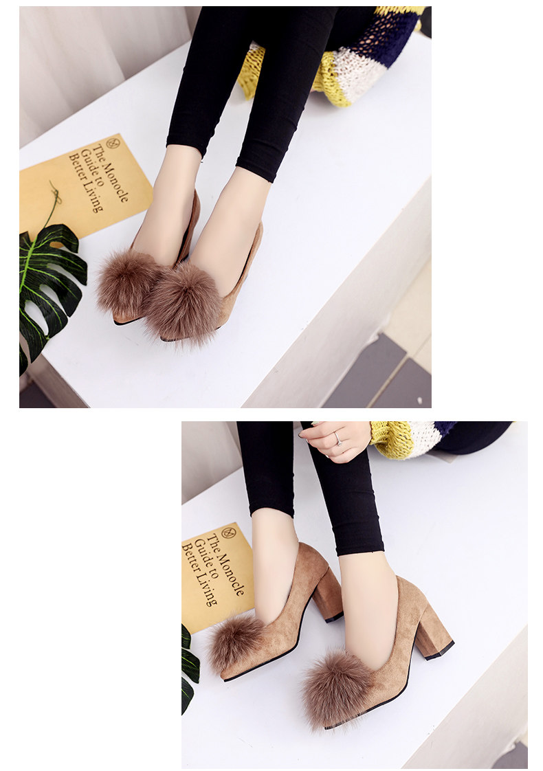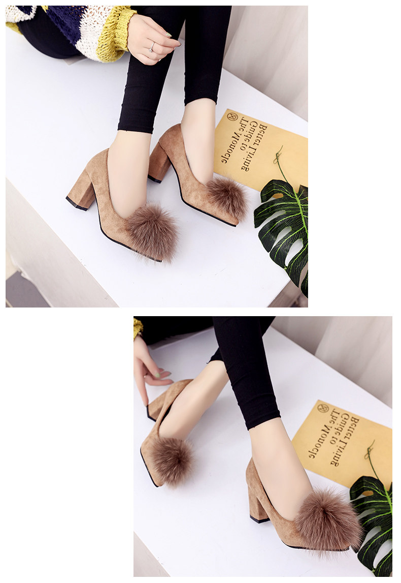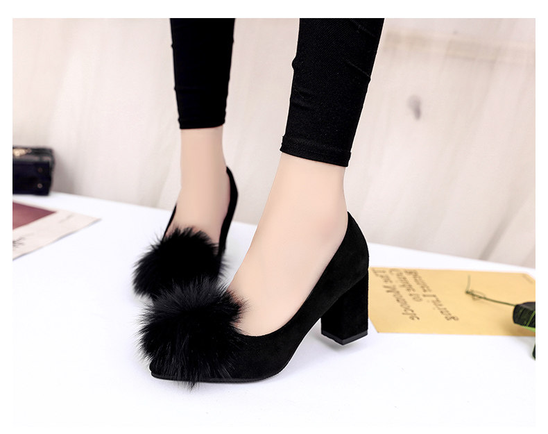韩版小清新高跟鞋女秋季新款尖头粗跟浅口单鞋休闲百搭女鞋子